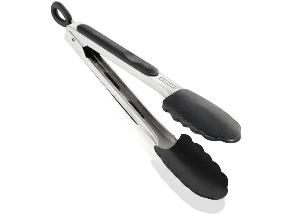 Openen en vergrendelen met alleen je duim. Dankzij het nieuwe vastzetmechanisme bedien je de Leifheit keuken- en barbecuetang uit de serie ProLine gemakkelijk met één hand. De tang springt met één klik open en is even snel weer te vergrendelen. De kop van de tang is van elastisch nylon en is hittebestendig tot 160 °C. Je kunt de tang dus zonder meer in pannen met antiaanbaklaag gebruiken ? voor krassen hoef je niet bang te zijn. De stevige handgrepen van roestvrij staal liggen prettig in de hand. Aan het ophangoog hangt de tang altijd binnen handbereik en neemt weinig plaats in. Lengte 23 cm.