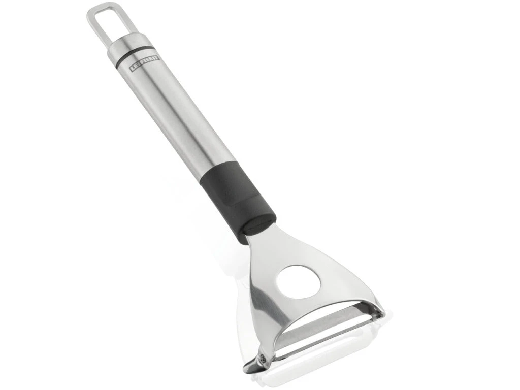 Chic, strak en elegant ? dat zijn de kenmerken van de keukenhulpjes uit de serie ProLine van Leifheit. Met hun fraaie design van hoogwaardig roestvrij staal en zwart kunststof zijn ze een stijlvolle aanwinst voor iedere keuken en tegelijk bijzonder gebruiksvriendelijk. Het meebewegende mes schilt aardappelen, groente en komkommer bijzonder dun. De ovale handgreep van deze dunschiller uit de serie ProLine ligt goed en veilig in de hand. Het hoogwaardig materiaal van roestvrij staal zorgt voor een aangename stabiliteit. Met handig ophangoog. Geschikt voor de los verkrijgbare ProLine ophangrail.