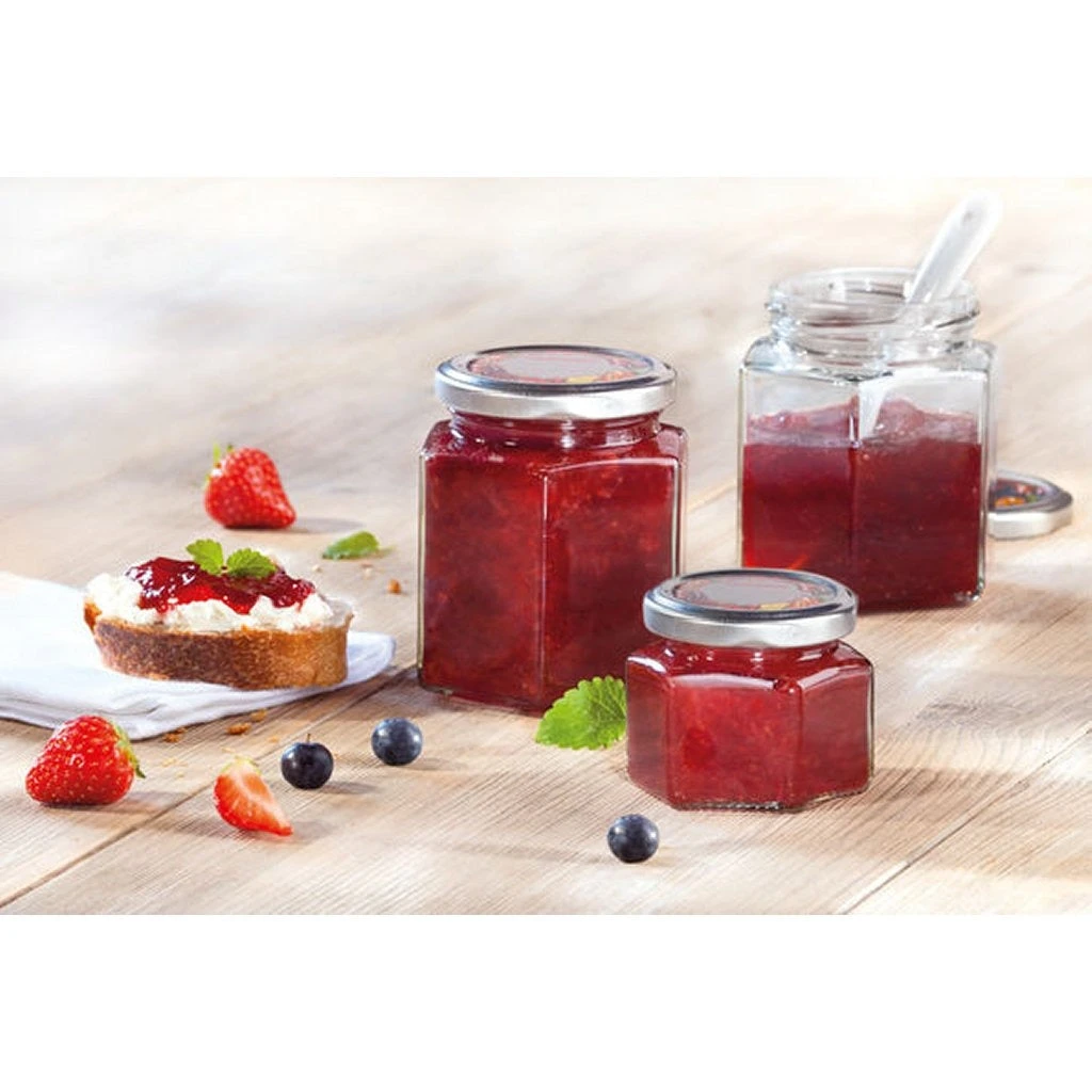 Zelfgemaakte cadeautjes uit eigen keuken zijn altijd welkom. Geef jouw persoonlijk cadeautje in deze decoratieve zeshoekige glazen potje van Leifheit. Met slechts 106 ml inhoud en hun fraaie zeshoekige vorm zijn deze potjes perfect geschikt als kleine attentie. Gebruik ze om zelfgemaakte jam, lekkere vruchtengelei, compote of geurige kruiden cadeau te geven. Door de fraaie zeshoekige vorm zijn deze potten van Leifheit ideale delicatessenglazen. Zet meerdere potjes bij elkaar voor decoratief bewaren van kruiden en specerijen in je keuken. Luchtdicht sluitende en decoratief versierde schroefdeksel met ruimte voor opschrift zoals inmaakdatum en inhoud.
