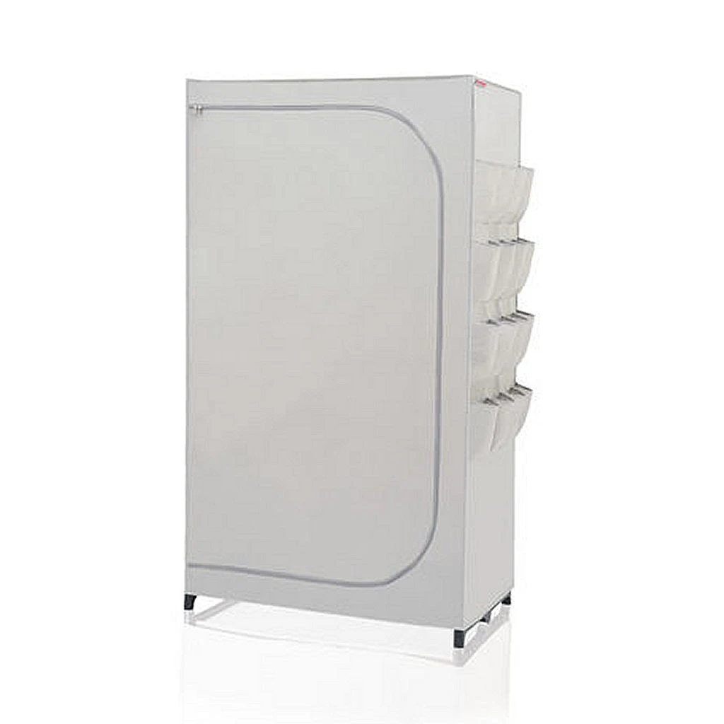 Ruimtewonder ? biedt heel veel plaats voor kleding en is leeg supercompact op te vouwen. Deze Leifheit kast in stijlvolle grijze stof is een handige en flexibele opbergoplossing voor winterkleding in de zomer en zomerkleding in de winter. Skikleding, wandelkleding, jassen, broeken, accessoires en schoenen: alles past in deze ruime kast ? met kledingroede en bovendien 16 bijzonder praktische vakken buiten op de zijkant. Staat absoluut stabiel en stevig, ook vol met spullen. Want deze mobiele kast heeft een robuust frame met versterkt steeksysteem, een verstevigingskruis aan de achterkant en een solide bodem. De stevige polyester bekledingsstof ? meerlaags en dichtgeweven ? beschermt de inhoud tegen stof en vuil. De stof ademt en is afwasbaar. Openen en sluiten gaat snel met de lichtlopende degelijke rits. De kast kan aangevuld worden met diverse accessoires ? voor nog meer en nog handiger bergruimte. Er zijn Leifheit hangorganizers, opbergboxen Big en Small, vacuümopbergzakken en kledinghoezen ? een ideaal modulair systeem. Is de kast een seizoen niet nodig, dan kan hij gemakkelijk compact opgevouwen en opgeborgen worden.