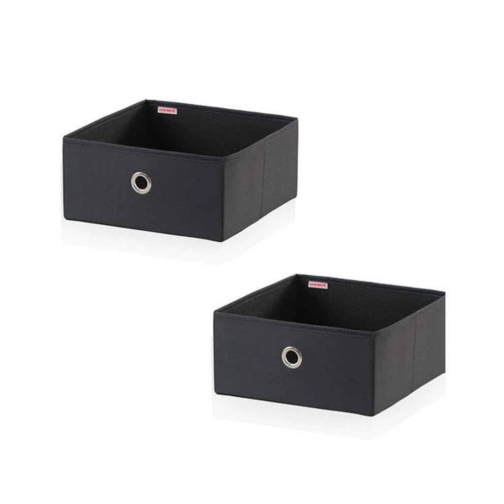 Ideaal voor ondergoed, sokken, riemen, sjaals en verder alles wat je schoon en overzichtelijk wilt opbergen. Heerlijk, zo’n opgeruimde kast ? met de Leifheit Small Box set van 2 in stijlvolle zwarte stof. Heel handig zijn de stevige, extra versterkte wanden en bodem. Ook een lade vol spullen is gemakkelijk op te pakken en weer terug te schuiven. De fraaie metalen ring aan de voorzijde is tegelijk een praktische handgreep. Ideale hoogte van 13 cm. Zo heb je altijd goed overzicht over de totale inhoud van de box. De set is gemaakt van een meerlaagse dichtgeweven polyester stof, die ademt en afwasbaar is. De inhoud is dus schoon en hygiënisch opgeborgen. De boxen zijn speciaal ontworpen voor de hangorganizer en de schoenenkast van het Leifheit Combi System, maar ze zijn prima te gebruiken in elke garderobekast en ladekast. Leeg zijn de boxen klein op te vouwen en plaatsbesparend op te bergen ? net zoals alle artikelen van het Leifheit Combi System.