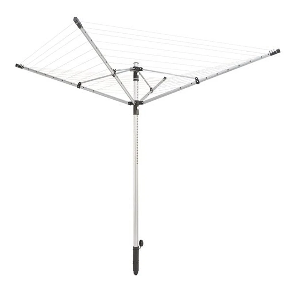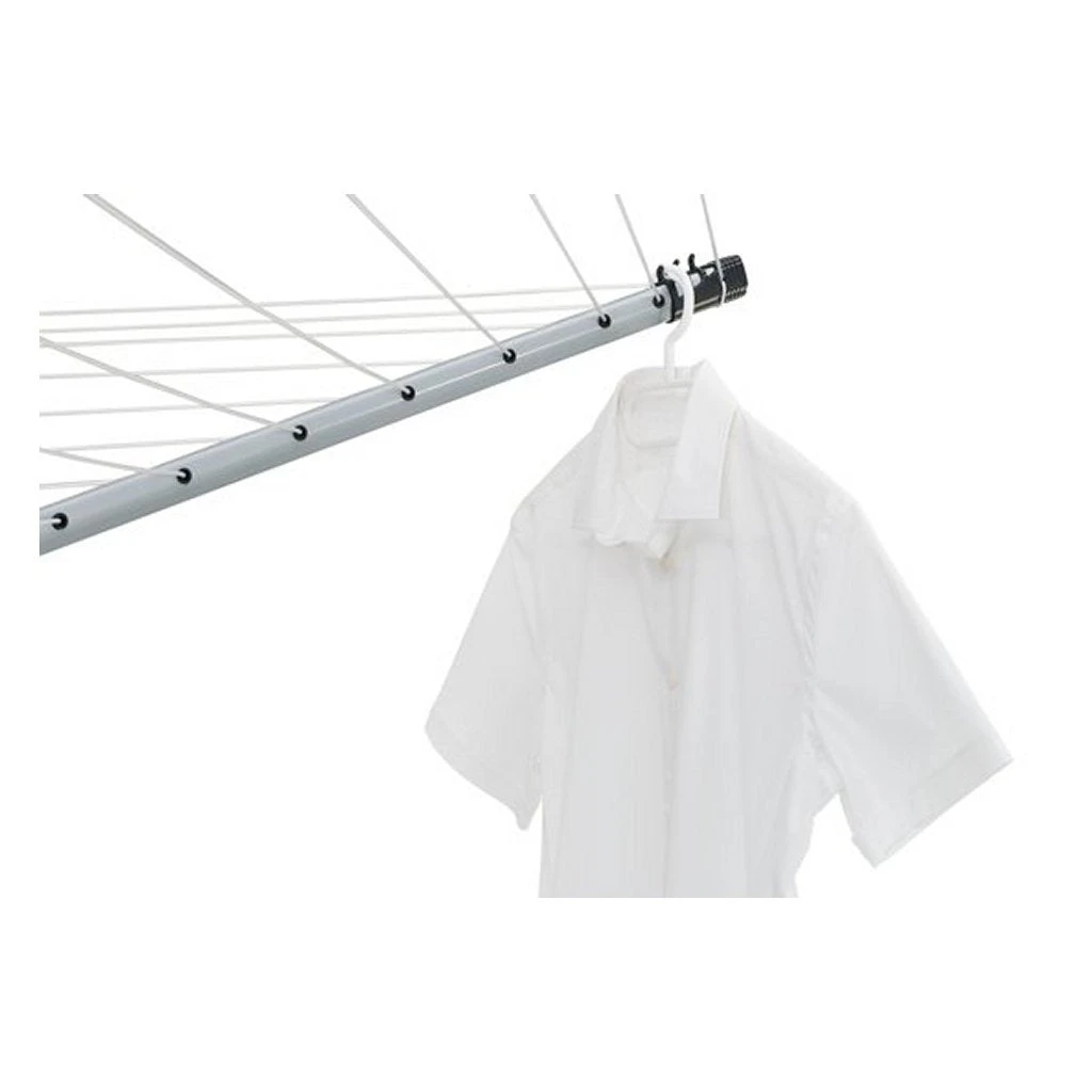 De droogmolen heeft ruimte voor 5 wastrommels vol was en is makkelijk te gebruiken met slechts 1 beweging. De 4 armen van de droger kunnen moeiteloos geopend worden zonder dat de lijnen verstrikt raken dankzij het geavanceerde opensysteem. De hoogte van de molen kan ingesteld worden tussen 135 en 180 cm. Er zitten in totaal 12 haken voor kleerhangers verspreid over de 4 armen van de molen, dit geeft extra ruimte en kreukvrij drogen van blouses, shirts en t-shirts. De stalen draagarmen en stevige middenpaal zorgen ervoor dat de droogmolen stevig is, zelfs wanneer hij volledig volgeladen is met wasgoed. Er zitten in totaal 12 haken voor kleerhangers verspreid over de 4 armen, wat zorgt voor extra ruimte en een mogelijkheid om snel en kreukvrij blouses, shirts en t-shirts te drogen.