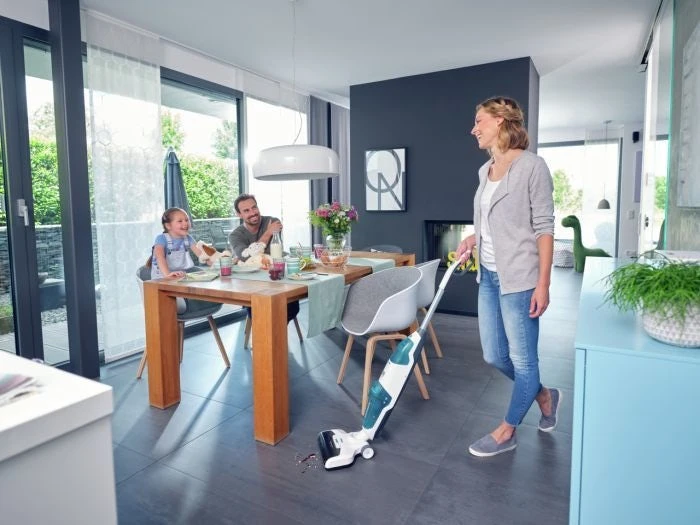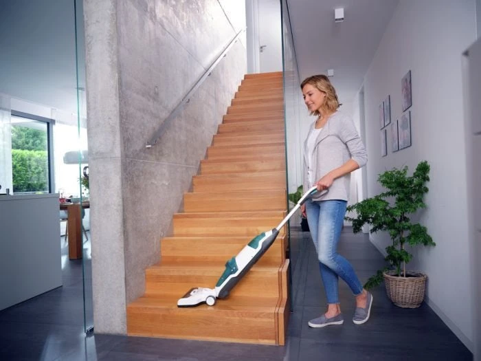 - Bespaart tijd door in één apparaat twee klussen te combineren: stofzuigen en vloerwissen