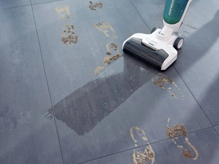 - De watertoevoer is naar wens flexibel regelbaar door een druk op de knop. Daardoor is het apparaat geschikt voor het schoonmaken van alle soorten harde en gelakte vloeren