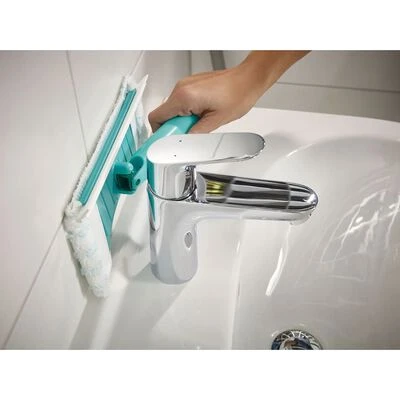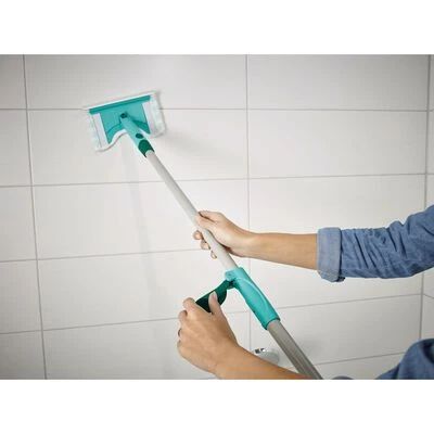 Dankzij de grote flexibiliteit kan de Flexi Pad badkamerreiniger van Leifheit in iedere hoek gebruikt worden.