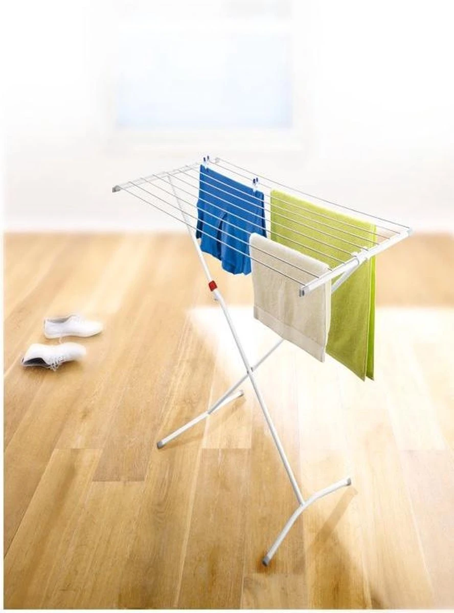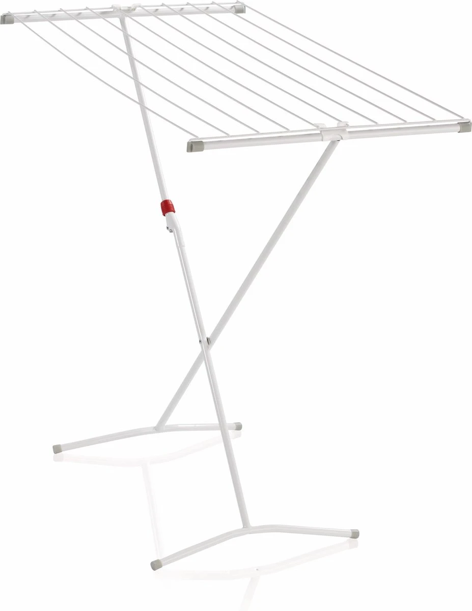 Staand droogrek Leifheit Classic 100 Easy is compact, stabiel en bovendien inklapbaar. Met zijn 52 cm breedte past dit smalle droogrek ook op het kleinste balkonnetje, op een krappe gang en zelfs in het bad. De drooglengte van 10 meter biedt ruimte voor een hele wasmachinelading. Het frame is voorzien van een kinderbeveiliging en kan gemakkelijk en snel ingeklapt worden.