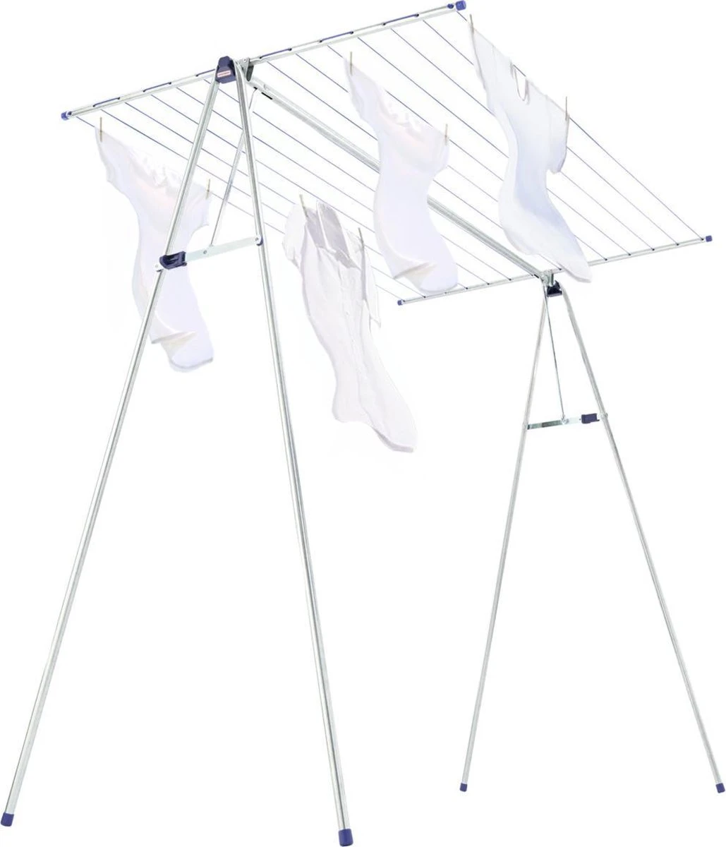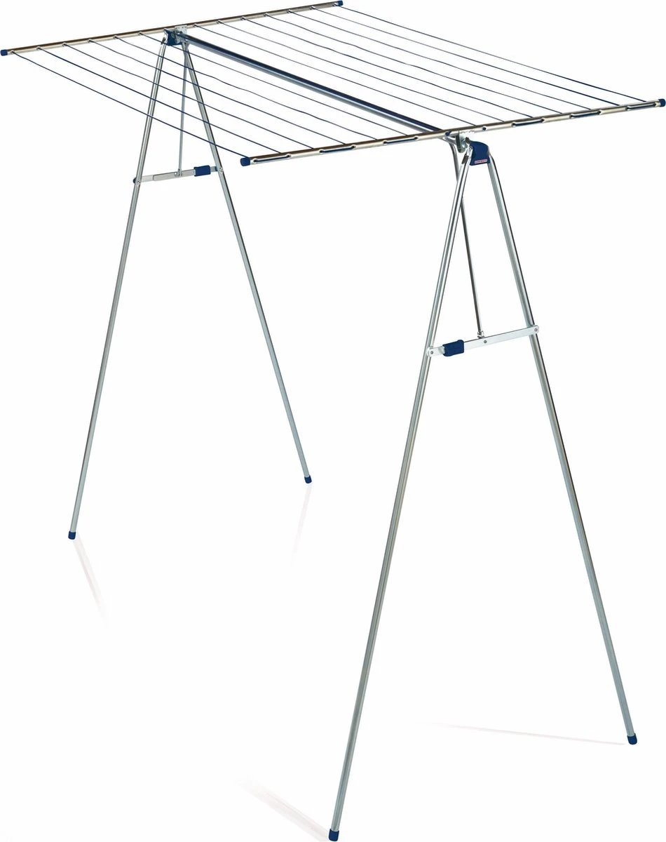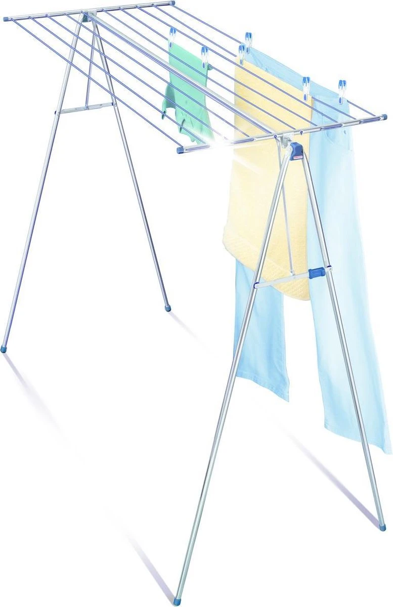 Dit staande droogrek Leifheit Linomaxx 210 is een buitengewoon allroundtalent voor het drogen van je wasgoed. Dit 1,50 meter hoge en 1,50 meter brede droogrek is ideaal voor grote en lange stukken wasgoed. Beddengoed, broeken en grote badlakens kunnen nu eindelijk drogen zonder over de vloer te slepen. Het bijzondere aan het Leifheit Linomax 210 droogrek is het afneembare waslijnopzetstuk. Het biedt een drooglengte van 21 meter, goed voor ruim twee wasmachineladingen. Haal je het opzetstuk van het droogrek af, dan heb je een praktisch garderoberek of kledingrek. Handig bij het strijken of voor het luchten van kleding. Opzetten en inklappen van droogrek Leifheit Linomaxx 210 gaat simpel en snel. Door de automatische vergrendeling staat het droogrek veilig en stabiel ook als het vol was hangt. Na gebruik kan het droogrek compact ingeklapt en opgeborgen worden.