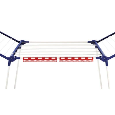 Langer wasgoed, zoals handdoeken en broeken, kan op de inklapbare vleugels worden geplaatst. Dankzij de hoogte van 105 cm hangt er niets op de grond.