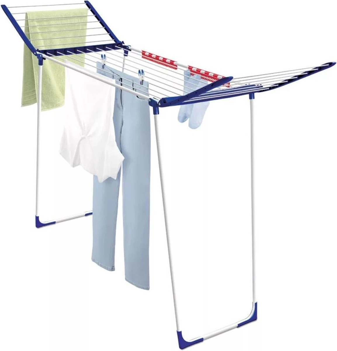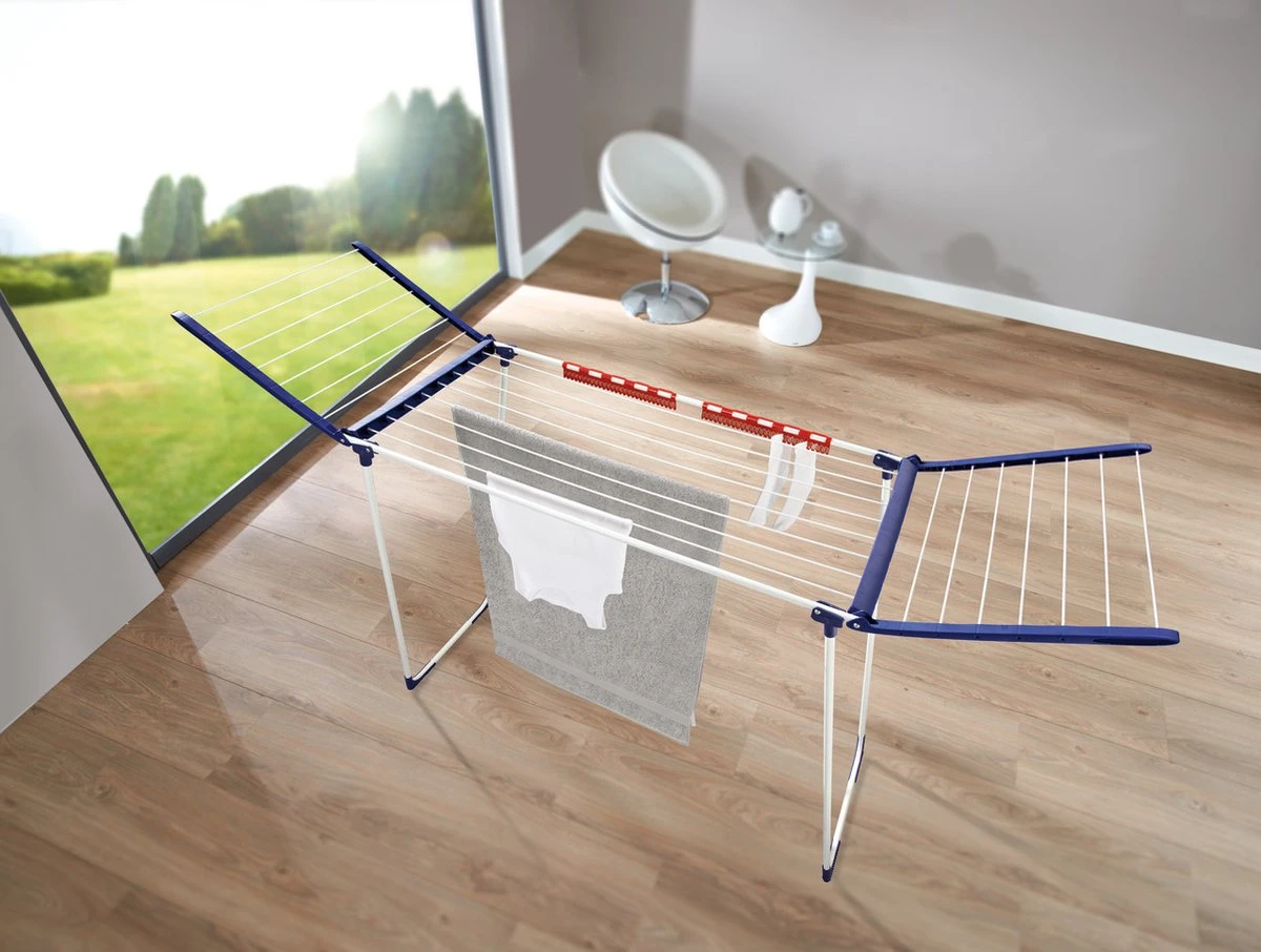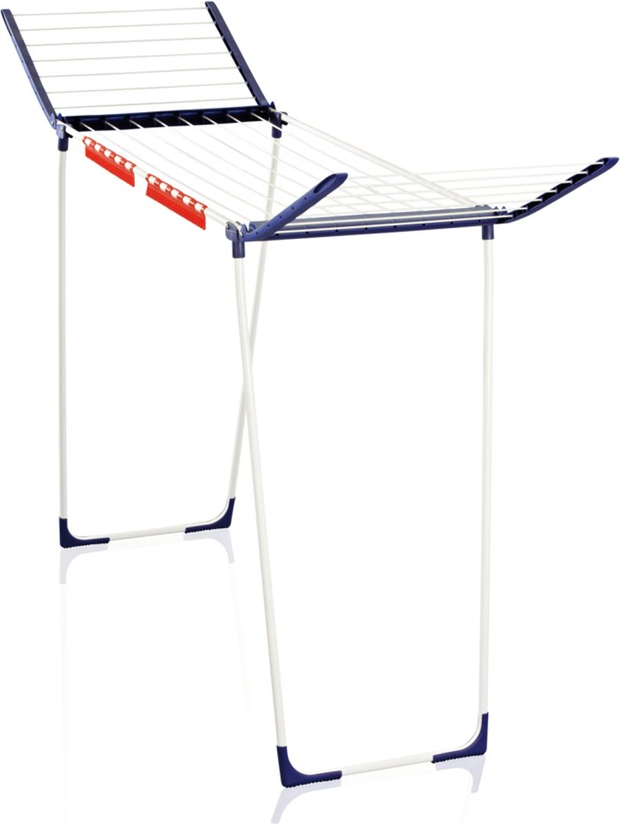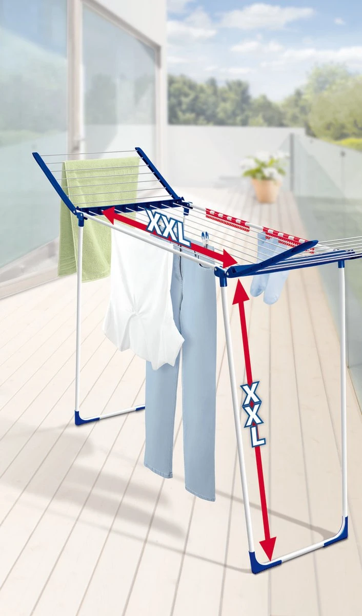 Dit XXL droogrek biedt bijzonder veel ruimte voor je was, zowel in de hoogte als in de breedte. Niet alleen lang maar ook breed wasgoed kun je gemakkelijk kwijt op de droogstangen met een lengte van 1,10 meter. Ook passen er meerdere kledingstukken naast elkaar. Een ander voordeel van dit droogrek is de comfortabele hoogte. Je kunt zonder bukken en zonder rugpijn de was ophangen, dankzij de ideale werkhoogte van 1,08 meter.