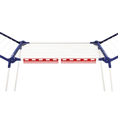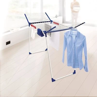 Langer wasgoed, zoals handdoeken en broeken, kan op de inklapbare vleugels worden geplaatst. Dankzij de hoogte van 107 cm hangt er niets op de grond.