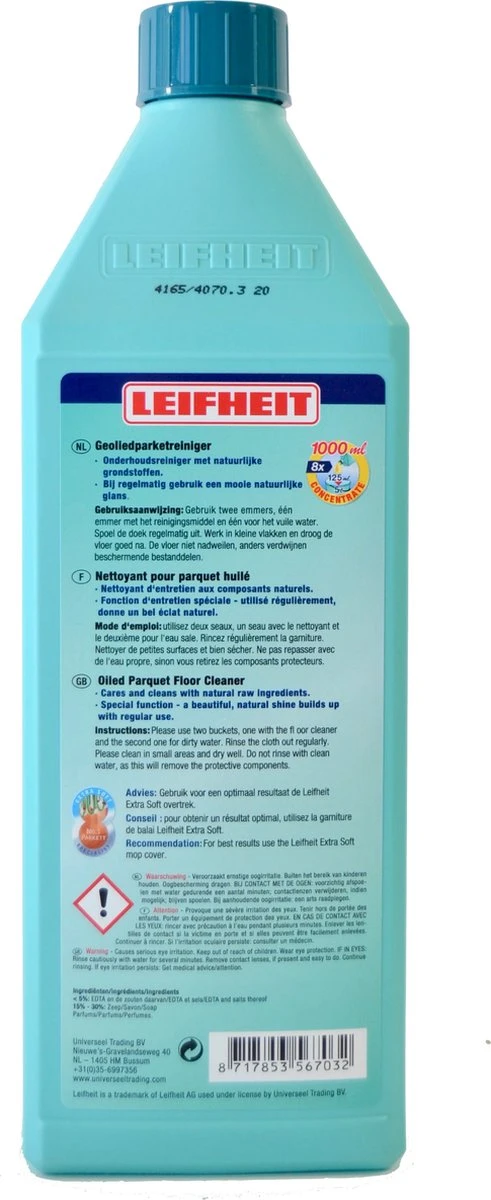 Special Cleaning voor geolied parket is een onderhoudsreiniger op basis van natuurlijke grondstoffen, die wordt gebruikt voor de reiniging en het onderhoud van geoliede vloeren. Bij regelmatig gebruik ontstaat er een mooie natuurlijke glans, die door boenen nog verhoogd kan worden.