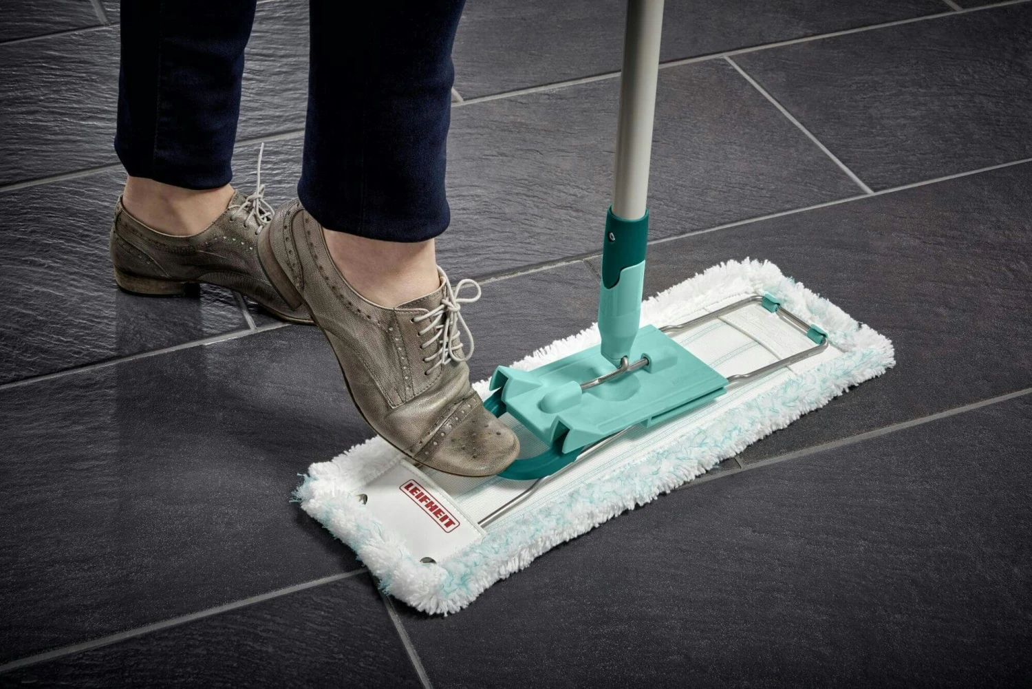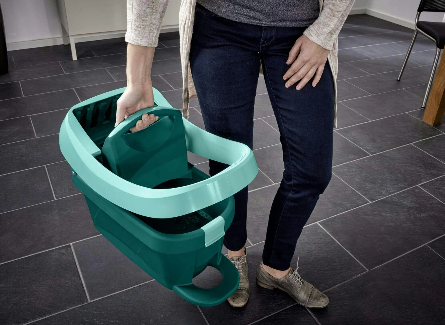 Steek je handen in het vuile water. Nu worden de Leifheit-wisserpers Profi XL met wielen en de vloerwisser Profi XL micro-duo gebruikt: verwijder eenvoudig het dweilpaneel van de vloerwisser met een voetklik, plaats het in de wisserpers en knijp het moeiteloos uit, klaar. De vloerwisser is uitgerust met een hoog reinigende 2-vezel dweil overtrek, die geschikt is voor alle vloeren, en een 360 ° draaibare all-round verbinding. Twee soepel lopende rollen direct aan de onderkant van de emmer maken comfortabel vegen mogelijk. De veegbreedte is statig 42 cm.