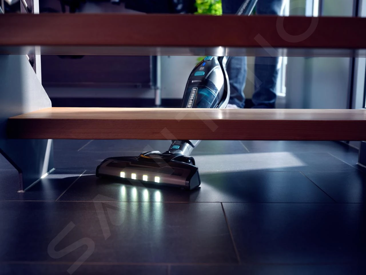 - 4 front-LED’s maken het gemakkelijk om donkere hoeken schoon te maken (bijv. onder meubels of in donkere hoeken)