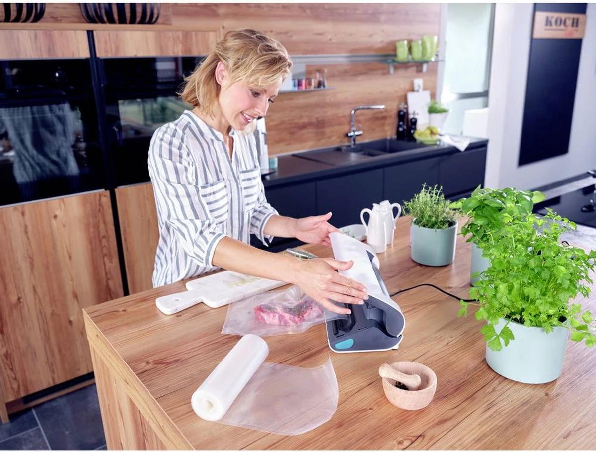 Gevacumeerd voedsel blijft tot wel 5x langer vers. De vacumeerfolie is kook- en vriesbestendig én geschikt voor in de magnetron. Je knipt de folie eenvoudig op het juiste formaat. De 56 etiketten helpen bij het onthouden van de versheidsdatum.