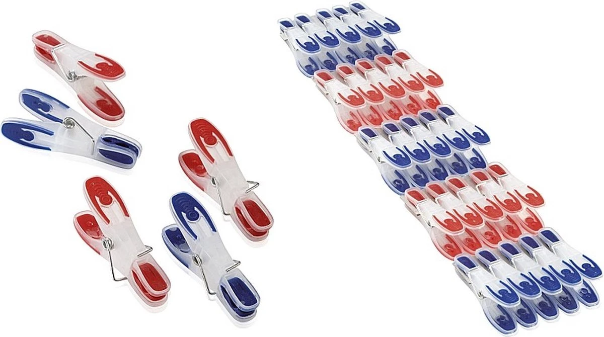 - 15 x blauwe, 10 x rode wasknijpers