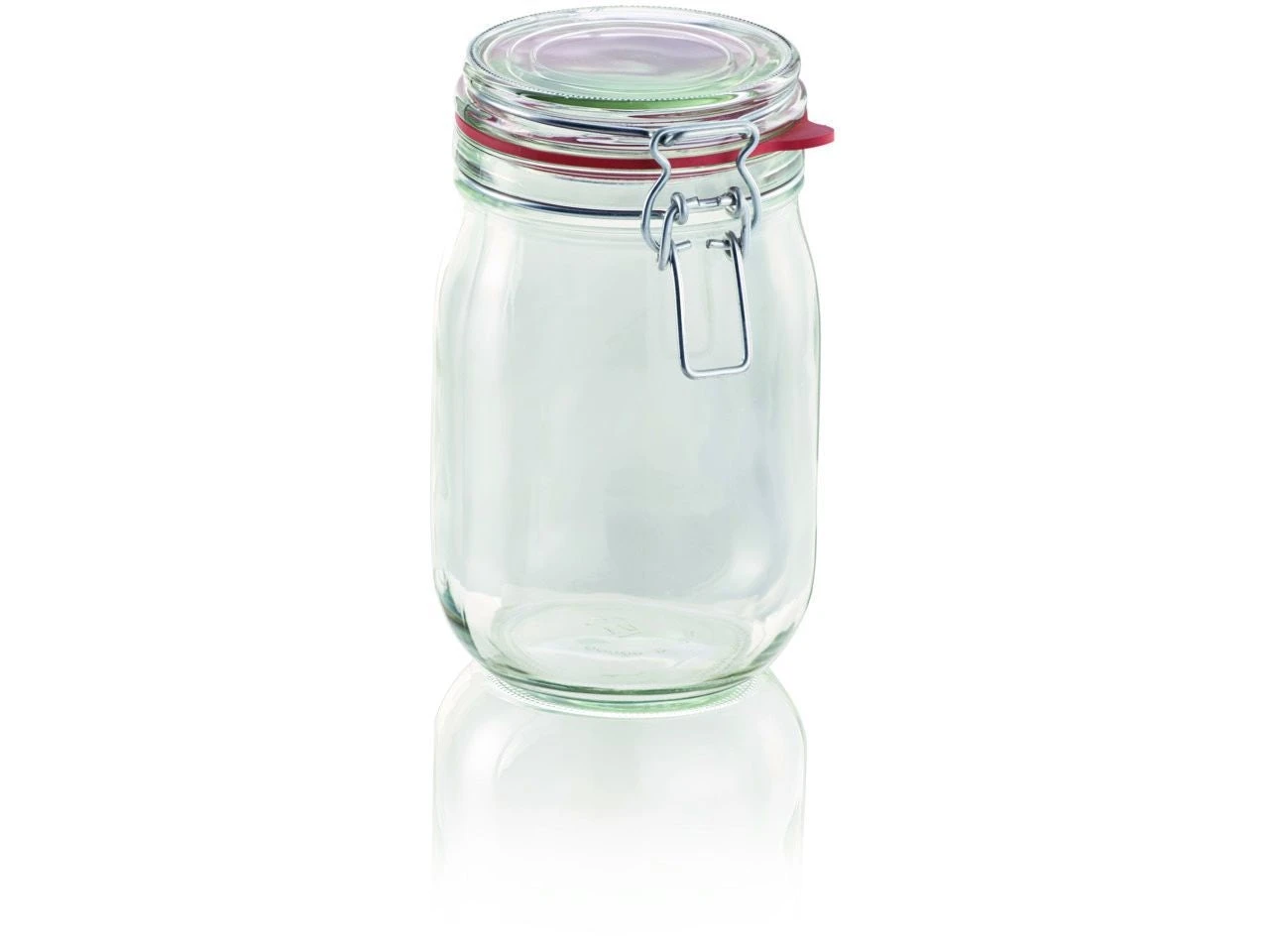 Groot en mooi gevormd voor het inkoken, inmaken en inleggen van fruit en groente of voor het bewaren van suiker, bloem en koffie. Met hoogwaardige draadbeugelsluiting van roestvrij edelstaal. Made in Germany.